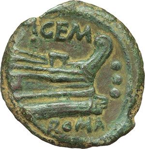 Roman Republican. C. Aburius Geminus. Quadrans, 134 BC. Obv.: Head of Hercules right. Three pellets behind. Rev.: [C ABVRI?] GEM. Prow right. Three pellets before. ROMA behind. Cfr. Cr. 244/3 var. AE. g. 4.19 mm. 17.50 R. Good VF+/About EF. Repubblica Romana. C. Aburius Geminus. Quadrante, 134 a.C. D/ Testa di Ercole a destra. Dietro, tre globetti. R/ [C ABVRI?] GEM. Prua a destra. Davanti, tre globetti. Sotto, ROMA. Cfr. Cr. 244/3 var. AE. g. 4.19 mm. 17.50 R. Attribuzione incerta. Bel BB+/qSPL.