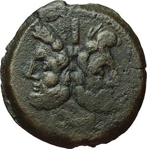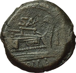 Roman Republican. 'C.SAX' series. As, Central Italy ca 169-158. Obv.: Laureate head of Janus; above mark of value I. Rev.: Prow right; above SAX, before mark of value and below, ROMA. B. Clovia 1. Syd. 361. Cr. 180/1. AE. g. 28.77 mm. 31.00 VF. Repubblica Romana. Serie 'C.SAX'. Asse, Italia centrale ca 169-158. D/ Testa di Giano laureata, sopra segno di valore I. R/ Prua a destra; sopra SAX, davanti segno di valore I. Sotto, ROMA. B. Clovia 1. Syd. 361. Cr. 180/1. AE. g. 28.77 mm. 31.00 BB.
