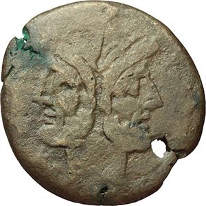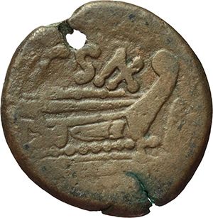 Roman Republican. 'C.SAX' series. As, Central Italy ca 169-158. Obv.: Laureate head of Janus; above mark of value I. Rev.: Prow right; above SAX, before mark of value and below, ROMA. B. Clovia 1. Syd. 361. Cr. 180/1. AE. g. 20.05 mm. 32.00 F/About VF. Repubblica Romana. Serie 'C.SAX'. Asse, Italia centrale ca 169-158. D/ Testa di Giano laureata, sopra segno di valore I. R/ Prua a destra; sopra SAX, davanti segno di valore I e sotto, ROMA. B. Clovia 1. Syd. 361. Cr. 180/1. AE. g. 20.05 mm. 32.00 MB/qBB.