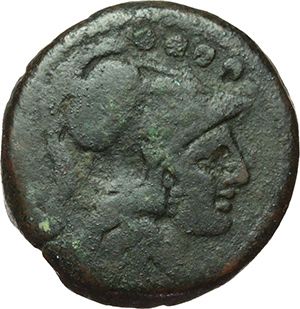 Roman Republican. 'C.SAX' series. Triens, Central Italy ca 169-158. Obv.: Helmeted head of Minerva right, behind four pellets. Rev.: Prow right; above C.SAX, before four pellets. Below, ROMA. B. Clovia 2. Syd. 361b. Cr. 180/3. AE. g. 8.64 mm. 20.80 NC. VF. Repubblica Romana. Serie 'C.SAX'. Triente, Italia centrale ca 169-158. D/ Testa di Minerva elmata a destra, dietro quattro globetti. R/ Prua a destra; C.SAX, davanti quattro globetti. Sotto, ROMA. B. Clovia 2. Syd. 361b. Cr. 180/3. AE. g. 8.64 mm. 20.80 NC. BB.