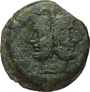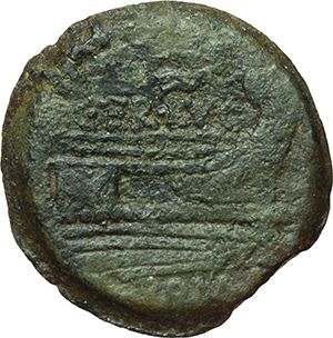 Roman Republican. C. Terentius Lucanus. As, ca 147. Obv.: Laureate head of Janus, above mark of value I. Rev.: Prow right; above C.TER.LVC, before mark of value. Below, ROMA. B. Terentia 11. Syd 426. Cr. 217/2. AE. g. 22.22 mm. 31.50 VF. Repubblica Romana. C. Terentius Lucanus. Asse, ca 147. D/ Testa di Giano laureata, sopra segno di valore I. R/ Prua a destra; sopra C.TER.LVC, davanti segno di valore. Sotto, ROMA. B. Terentia 11. Syd 426. Cr. 217/2. AE. g. 22.22 mm. 31.50 BB.