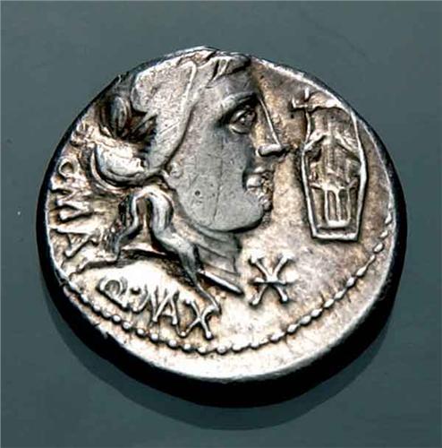 Roman Republican Coins - Quintus Maximus - Ag - Denaro al nome di Quintus Maximus databile agli anni 82-80 a.C. - Zecca: Roma - Diritto: effigie di Apollo a destra; di fronte una lira - Rovescio: cornucopia sovrapposta a fulmine - gr. 3,93 - Schiacciatura di conio al rovescio