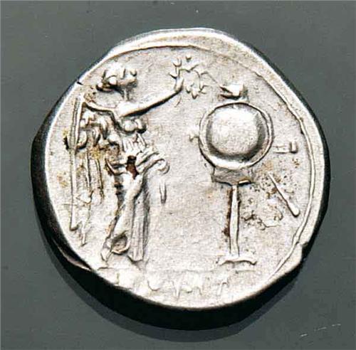 Monete Romane Repubblicane - Anonime - Vittoriato databile agli anni successivi al 211 a.C. - Metallo: Ag - Zecca: Roma - Diritto: effigie di Giove a destra - Rovescio: la Victoria incorona un trofeo - gr. 3,24 -