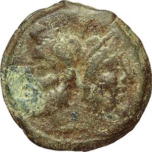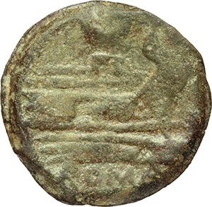 Roman Republican. 'Crescent' series. As, ca 155-149. Obv.: Laureate head of Janus, above mark of value I. Rev.: Prow right; above cresent, before mark of value. Below, ROMA. Syd -. Cr. 212/1. AE. g. 19.34 mm. 30.20 VF. Repubblica Romana. Serie 'crescente'. Asse, ca 155-149. D/ Testa di Giano laureata, sopra segno di valore I. R/ Prua a destra; sopra crescente, davanti segno di valore. Sotto, ROMA. Syd -. Cr. 212/1. AE. g. 19.34 mm. 30.20 BB.