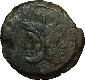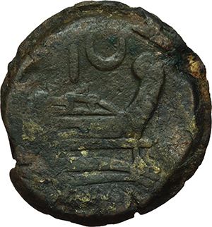 Roman Republican. 'Crescent' series. As, ca 207. Obv.: Laureate head of Janus; above, mark of value I. Rev.: Prow right; above, mark of value and crescent. Below, ROMA. Syd. 221. Cr. 57/3. AE. g. 39.38 mm. 36.00 VF. Repubblica Romana. Serie 'crescente'. Asse, ca 207. D/ Testa laureata di Giano, sopra segno di valore I. R/ Prua a destra; sopra segno di valore e crescente. Sotto, ROMA. Syd. 221. Cr. 57/3. AE. g. 39.38 mm. 36.00 BB.