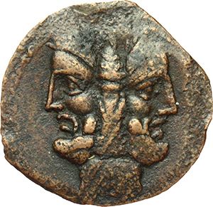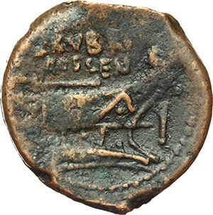Roman Republican. L. Rubrius Dossenus. As, ca 87. Obv.: Laureate head of Janus, above mark of value I. Rev.: Prow right; above L.RVBRI/DOSSEN, before mark of value. B. Rubria 5. Syd. 709. Cr. 348/5. AE. g. 9.41 mm. 28.00 VF+. Repubblica Romana. L. Rubrius Dossenus. Asse, ca 87. D/ Testa di Giano laureata, sopra segno di valore I. R/ Prua a destra; sopa L.RVBRI/DOSSEN, davanti segno di valore. B. Rubria 5. Syd. 709. Cr. 348/5. AE. g. 9.41 mm. 28.00 BB+.