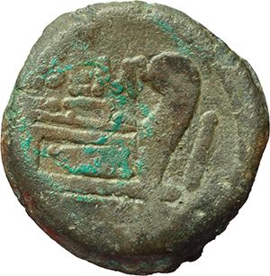 Roman Republican. L. Sempronius Pitio. As, ca 148. Obv.: Laureate head of Janus; above mark of value I. Rev.: Prow right; above L.SEMPR, before mark of value. Below, ROMA. B. Sempronia 4. Syd. 403 var. Cr. 216/2b. AE. g. 17.15 mm. 29.00 F+/About VF. Repubblica Romana. L. Sempronius Pitio. Asse, ca 148. D/ Testa di Giano laureata, sopra segno di valore I. R/ Prua a destra; sopra L.SEMPR, davanti segno di valore. Sotto, ROMA. B. Sempronia 4. Syd. 403 var. Cr. 216/2b. AE. g. 17.15 mm. 29.00 MB+/qBB.