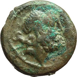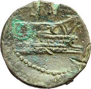 Roman Republican. 'LPDAP' series. Semis, ca 91. Obv.: Laureate head of Saturn right, behid S. Rev.: Prow right; above L.P.D.A.P. Syd. 678a. Cr. 338/2. AE. g. 7.44 mm. 21.00 NC. VF. Repubblica Romana. Serie 'LPDAP'. Semisse, ca 91. D/ Testa di Saturno laureata a destra, dietro S. R/ Prua a destra; sopra L.P.D.A.P. Syd. 678a. Cr. 338/2. AE. g. 7.44 mm. 21.00 NC. BB.