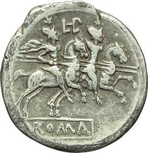 Roman Republican. 'LPLH' series. Denarius, ca 189-180. Obv.: C·ANTEST – I Helmeted head of Roma right; below chin, X. Rev.: Dioscuri galloping right; above, LPLH ligate, and below, ROMA. B. Plautia 1. Syd. 332. Cr. 134/1b. AG. g. 3.81 mm. 19.00 R. VF. Repubblica Romana. Serie 'LPLH'. Denario, ca 189-180. D/ C·ANTEST – I. Testa elmata di Roma a destra; sotto il mento X. R/ I Dioscuri al galoppo a destra; sopra LPLH e sotto, ROMA. B. Plautia 1. Syd. 332. Cr. 134/1b. AG. g. 3.81 mm. 19.00 R. BB.