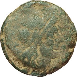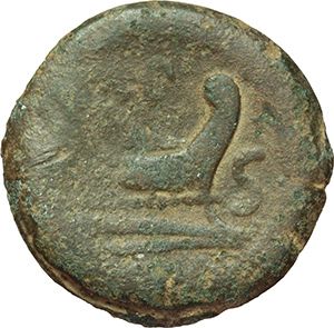 Roman Republican. 'LPLH' series. Semis, ca 194-190. Obv.: Laureate head of Saturn right, behind S. Rev.: Prow right; above LPLH, before S. Below ROMA. B. Plautia 4. Syd 333a. Cr. 134/3. AE. g. 14.74 mm. 27.00 RRR. About VF. Extremely rare, only few specimens known. Repubblica Romana. Serie 'LPLH'. Semisse, ca 194-190. D/ Testa di Saturno laureata a destra, dietro S. R/ Prua a destra; sopra LPLH, davanti S. Sotto, ROMA. B. Plautia 4. Syd 333a. Cr. 134/3. AE. g. 14.74 mm. 27.00 RRR. qBB. Estremamente raro, solo pochi esemplari conosciuti.