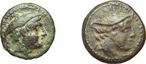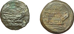 Roman Republican. Lot of two: semuncia, ca after 211. Obv.: Head of Mercury right. Rev.: Prwo right, above ROMA. Syd. 143f. Cr. 56/8. AE. g. 2.78 mm. 14.50 Good VF. Repubblica Romana. Lotto di 2: semuncia, ca dopo il 211. D/ Testa di Mercurio a destra. R/ Prua a destra; sopra ROMA. Syd. 143f. Cr. 56/8. AE. g. 2.78 mm. 14.50 BB+.