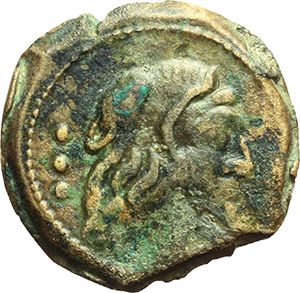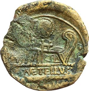 Roman Republican. M. Caecilius Q. f. Q. n. Metellus. Quadrans, ca 127. Obv.: Head of Hercules right, wearing lion skin, behind three pellets. Rev.: Prow right, inscribed M·METELLVS; above, Macedonian shield and before, three pellets. Below, ROMA. B. Caecilia 33. Syd. 482b. Cr. 263/5a. AE. g. 4.69 mm. 20.00 VF. Repubblica Romana. M. Caecilius Q. f. Q. n. Metellus. Quadrante, ca 127. D/ Testa di Ercole a destra con pelle di leone, dietro tre globetti. R/ Prua a destra; su cui è inscritto M.METELLVS, sopra scudo macedone, davanti tre globetti. Sotto, ROMA. B. Caecilia 33. Syd. 482b. Cr. 263/5a. AE. g. 4.69 mm. 20.00 BB.