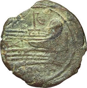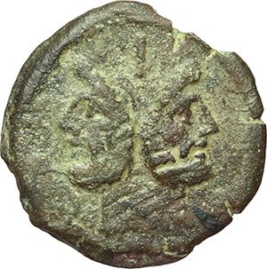 Roman Republican. 'Mast and sail' series. As, ca 155-149. Obv.: Laureate head of Janus, above mark of value I. Rev.: Prow right; above mast and sail, before mark of value. Below, ROMA. Syd. -. Cr. 213/1. AE. g. 17.86 mm. 31.00 NC. VF+. Repubblica Romana. Serie 'albero e vela'. Asse,ca 155-149. D/ Testa di Giano laureata, sopra segno di valore I. R/ Prua a destra; sopra timone ed uccello, davanti segno di valore. Sotto, ROMA. Syd. -. Cr. 213/1. AE. g. 17.86 mm. 31.00 NC. BB+.