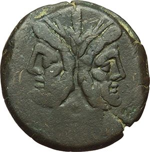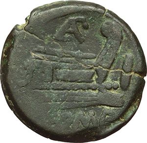 Roman Republican. 'PAE' series. As, ca 169-158. Obv.: Laureate head of Janus; above mark of value I. Rev.: Prow right, above PAE, before mark of value. Below, ROMA. B. Aemilia 1. Syd. 358. Cr. 176/1. AE. g. 25.58 mm. 31.50 Good VF. Repubblica Romana. Serie 'PAE'. Asse, ca 169-158. D/ Testa di Giano laureata, sopra segno di valore I. R/ Prua a destra, sopra PAE, davanti segno di valore I. Sotto, ROMA. B. Aemilia 1. Syd. 358. Cr. 176/1. AE. g. 25.58 mm. 31.50 BB+.