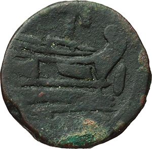 Roman Republican. 'PT or TP' series. As, ca 169-158. Obv.: Laureate head of Janus; above mark of value I. Rev.: Prow right; above PT, before mark of value. Below, ROMA. Syd. 353. Cr. 177/1. AE. g. 27.12 mm. 30.00 VF. Repubblica Romana. Serie 'PT oTP'. Asse, ca 169-158. D/ Testa di Giano laureata, sopra segno di valore I. R/ Prua a destra; sopra PT, davanti segno di valore. Sotto, ROMA. Syd. 353. Cr. 177/1. AE. g. 27.12 mm. 30.00 BB.