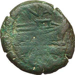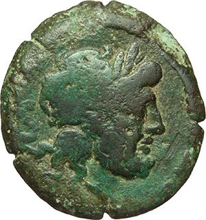 Roman Republican. Pinarius Natta. Semis, ca 155. Obv.: Laureate head of Saturn right, behid S. Rev.: Prow right; above NAT, before S. Below, ROMA. B. Pinaria 4. Syd 383a. Cr. 200/3. AE. g. 11.20 mm. 25.00 NC. VF. Repubblica Romana. Pinarius Natta. Semisse, ca 155. D/ Testa di Saturno laureata a destra, dietro S. R/ Prua a destra; sopra NAT, davanti S. Sotto, ROMA. B. Pinaria 4. Syd 383a. Cr. 200/3. AE. g. 11.20 mm. 25.00 NC. BB.