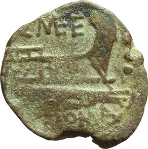 Roman Republican. Q. Caecilius Metellus. Quadrans, ca 130. Obv.: Head of Hercules right, wearing lion skin, behind three pellets. Rev.: Prow right; above Q.METE, before three pellets. Below, ROMA. B. Caecilia 26. Syd. 510b. Cr. 256/4a. AE. g. 4.17 mm. 18.50 VF. Repubblica Romana. Q. Caecilius Metellus. Quadrante, ca 130. D/ Testa di Ercole a destra con pelle di leone, dietro tre globetti. R/ Prua a destra; sopra Q.METE, davanti tre globetti. Sotto, ROMA. B. Caecilia 26. Syd. 510b. Cr. 256/4a. AE. g. 4.17 mm. 18.50 BB.