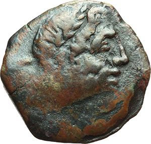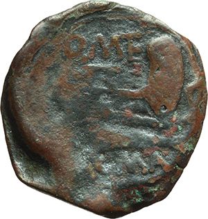Roman Republican. Q. Caecilius Metellus. Semis, ca 130. Obv.: Laureate head of Saturn right; behind, S. Rev.: Prow right; above Q.MTE. Below, ROMA. B. Caecilia 22. Syd. 510. Cr. 256/2a note. AE. g. 8.52 mm. 23.00 R. F+. A very rare legend variety. Repubblica Romana. Q. Caecilius Metellus. Semisse, ca 130. D/ Testa laureata di Saturno a destra, dietro S. R/ Prua a destra; sopra Q.MTE. Sotto, ROMA. B. Caecilia 22. Syd. 510. Cr. 256/2a note. AE. g. 8.52 mm. 23.00 R. MB+. Rara variante di legenda.