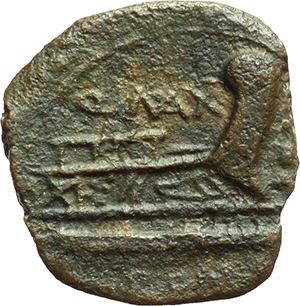 Roman Republican. Q.Fabius Maximus. Quadrans, ca 127. Obv.: Head of Hercules right, wearing lion skin, behind three pellets. Rev.: Prow right; above Q.MAX, before three pelltes. Below, ROMA. B. Fabia 10. Syd. 479a. Cr. 265/3. AE. g. 3.10 mm. 15.50 VF. Repubblica Romana. Q.Fabius Maximus. Quadrante, ca 127. D/ Testa di Ercole con pelle di leone a destra, dietro tre globetti. R/ Prua a destra, sopra Q.MAX, davanti tre globetti. Sotto, ROMA. B. Fabia 10. Syd. 479a. Cr. 265/3. AE. g. 3.10 mm. 15.50 BB.