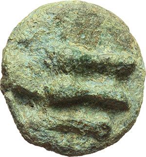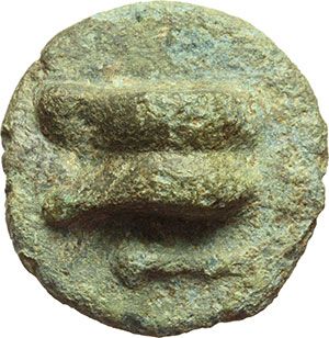 Roman Republican. Roma/Roma with club series. Uncia, 230-226 BC. Obv.: Knucklebone. Club below. Rev.: Knucklebone. Club below. Cr. 27/10. AE. g. 20.81 R. EF. A very attractive coin, with bold relifs. Repubblica Romana. Serie Roma/Roma, con la clava. Oncia, 230-226 a.C. D/ Astragalo. Sotto, clava. R/ Astragalo. Sotto, clava. Cr. 27/10. AE. g. 20.81 R. SPL. Esemplare molto attraente, con alti rilievi.