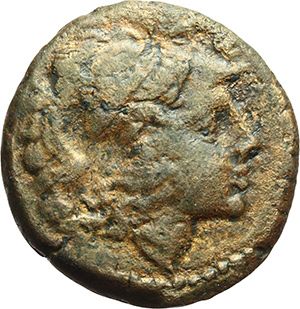 Roman Republican. 'Rostrum tridens' series. Triens, Sicily ca 207-206. Obv.: Helmeted head of Minerva right; above, four pellets. Rev.: Prow r.; above, corn-ear, before KA. Below, ROMA. Syd. 310c. Cr. 69/4a. AE. g. 7.43 mm. 22.00 VF. Traces of over-striking. Repubblica Romana. Serie 'rostrum tridens'. Triente, Sicilia ca 207-206. D/ Testa elmata di Minerva a destra; sopra quattro globetti. R/ Prua a destra; sopra spiga di grano, davanti KA. Sotto, ROMA. Syd. 310c. Cr. 69/4a. AE. g. 7.43 mm. 22.00 BB. Tracce di riconiazione.