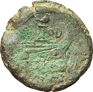 Roman Republican. Semis, ca 194-190. Obv.: Laureate head of Saturn right; behind S. Rev.: Prow right, above crescent, before S. Syd. 267a. Cr. 137/3. AE. g. 11.66 mm. 27.00 R. VF. Repubblica Romana. Serie crescente. Semisse, ca 194-190. D/ Testa laureata di Saturno a destra; dietro S. R/ Prua a destra; sopra un crescente, davanti S. Syd. 267a. Cr. 137/3. AE. g. 11.66 mm. 27.00 R. BB.