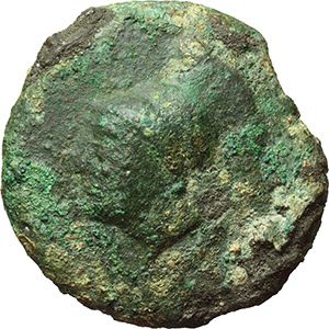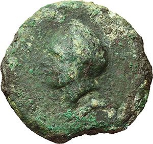 Roman Republican. Semis, ca 240. Obv.: Head of Minerva left, wearing Corinthian helmet. Rev.: Female head left; behind sickle and below S. T.V. 37. Cr. 25/5. HN Italy 301. AE. Engraver. 58. F+. Repubblica Romana. Serie librale. Semisse, ca 240. D/ Testa di Minerva con elmo corinzio a sinistra; sotto S. R/ Testa femminile a sinistra; dietro una falce e sotto, S. T.V. 37. Cr. 25/5. HN Italy 301. AE. Inc. 58. MB+.