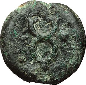 Roman Republican. Sextans, ca 240. Obv.: Scallop-shell. Rev.: Caduceus: on both sides a pellet, in the right field a sickle. T.V. 40. Cr. 25/8. HN Italy 304. AE. g. 58.00 mm. 37.00 F+. Repubblica Romana. Sestante, ca 240. D/ Conchiglia pecten. R/ Caduceo; su entrambi i lati un globetto, nel campo a destra una falce. T.V. 40. Cr. 25/8. HN Italy 304. AE. g. 58.00 mm. 37.00 MB+.