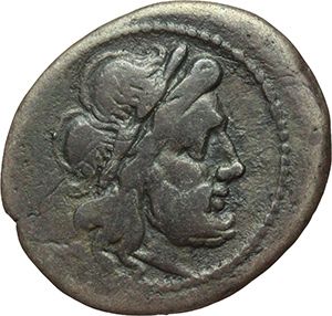 Roman Republican. 'TAMP' series. Victoriatus, ca 194-190. Obv.: Laureate head of Jupiter right. Rev.: Victory crowning trophy; in centre field, TAMP. In exergue, ROMA. Syd. 336. Cr. 133/1. AG. g. 2.59 mm. 17.00 NC. About VF. Repubblica Romana. Serie 'TAMP'. Vittoriato, ca 194-190. D/ Testa laureata di Giove a destra. R/ Vittoria incorona un trofeo; nel campo al centro, TAMP. In esergo, ROMA. Syd. 336. Cr. 133/1. AG. g. 2.59 mm. 17.00 NC. qBB.