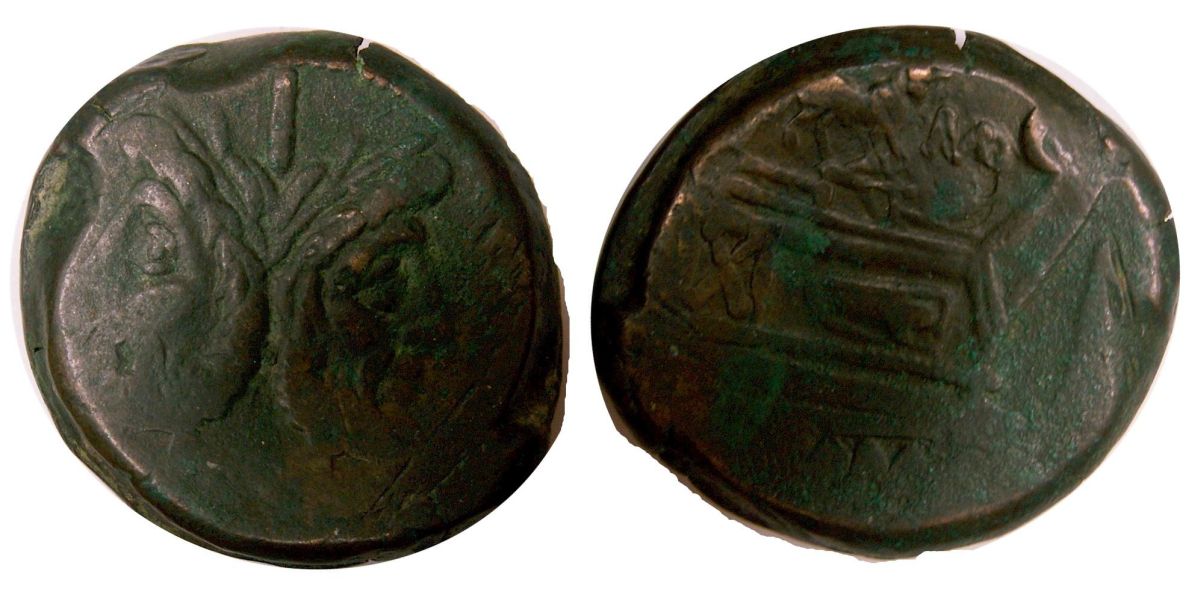 Roman Republican bronze As. ca. 189 to 179 BC. Reference Sear #672, Craw 299. Obverse : Head of J