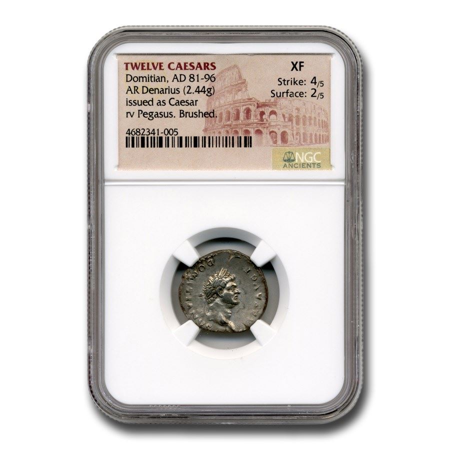 Roman Silver Denarius Emperor Domitian (81-96 AD) XF NGC
