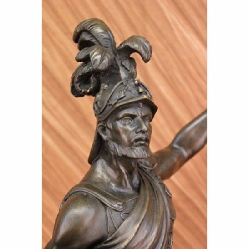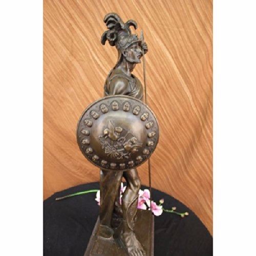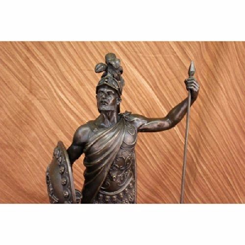 The Roman Knight Stands Proudly With His Armor And Weapons In Hand. His Confidence Radiates In His Comfortable Stance And Tense Muscles. A Long Spear Is In One Hand And His Shield In The Other. He Is Wearing Full Battle Costume On His Body With A Helmet To Match. This Symbol Of Bravery And War Was Crafted Using The Lost Wax Method. The Sculpture Rests On A Black Marble Base. Size: 30X15 inches. Weight: 60 LBS.