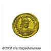 <B>Theodosius II.</B></I> A.D. 402-450. AV solidus (21 mm, 4.43 g). Constantinople, A.D 425-429. Helmeted and cuirassed bust facing slightly right, holding spear over shoulder and shield with horseman motif / Theodosius II and Valentinian III seated facin
