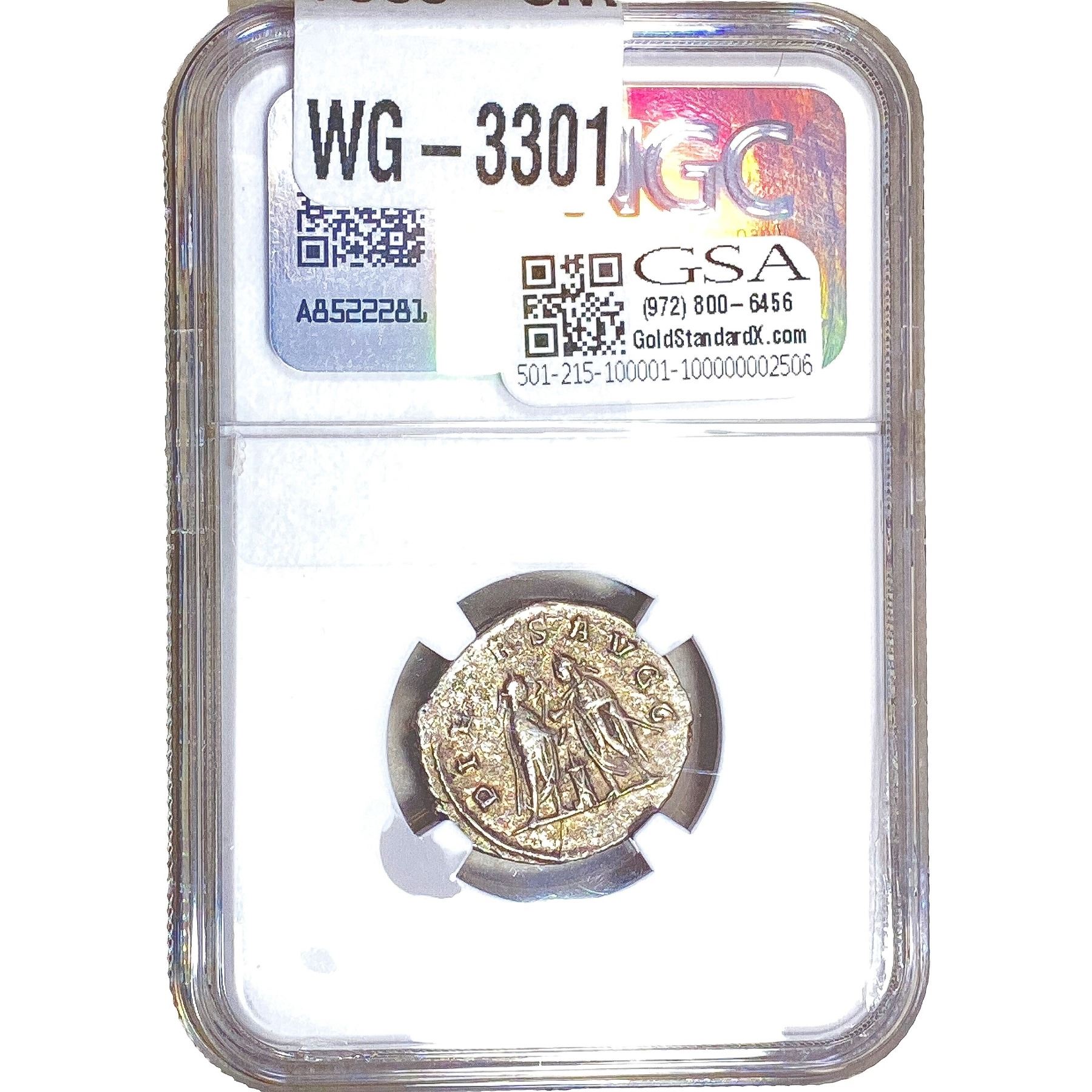 e. Coins sold referencing a third-party grading service are sold “AS IS” without any express or implied warranty, except for a guarantee by GSA that they are genuine. Removal or alteration of the holder, voids all of Bidder’s claims concerning that Product. Certain warranties may be available from the grading services and Bidders are referred to them for further details: Numismatic Guaranty Corporation (NGC), PO Box 4776, Sarasota, FL 34230, www.ngccoin.com/services/writtenguarantee.asp; Professional Coin Grading Services (PCGS), PO Box 9458, Newport Beach, CA 92658, www.pcgs.com/guarantee.html; ANACS, 6555 S. Kenton St., Ste. 303, Englewood, CO 80111; and Independent Coin Grading Co. (ICG), 7901 East Bellview, Ave., Suite 50, Englewood, CO 80111.
