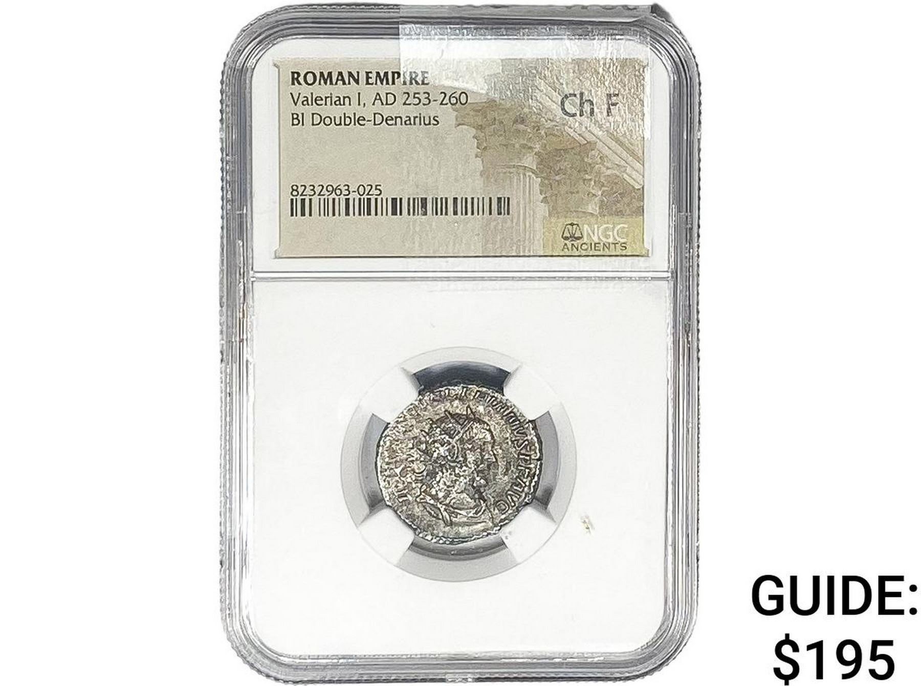Roman Valerian I, AD 253-260 BI Dbl-Denarius NGC Ch F