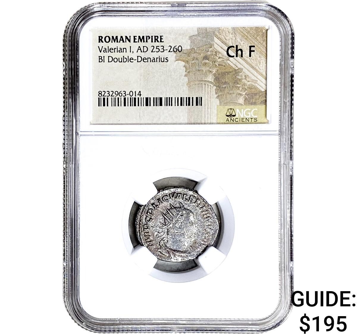 Roman Valerian I, AD 253-260 BI Dbl-Denarius NGC Ch F