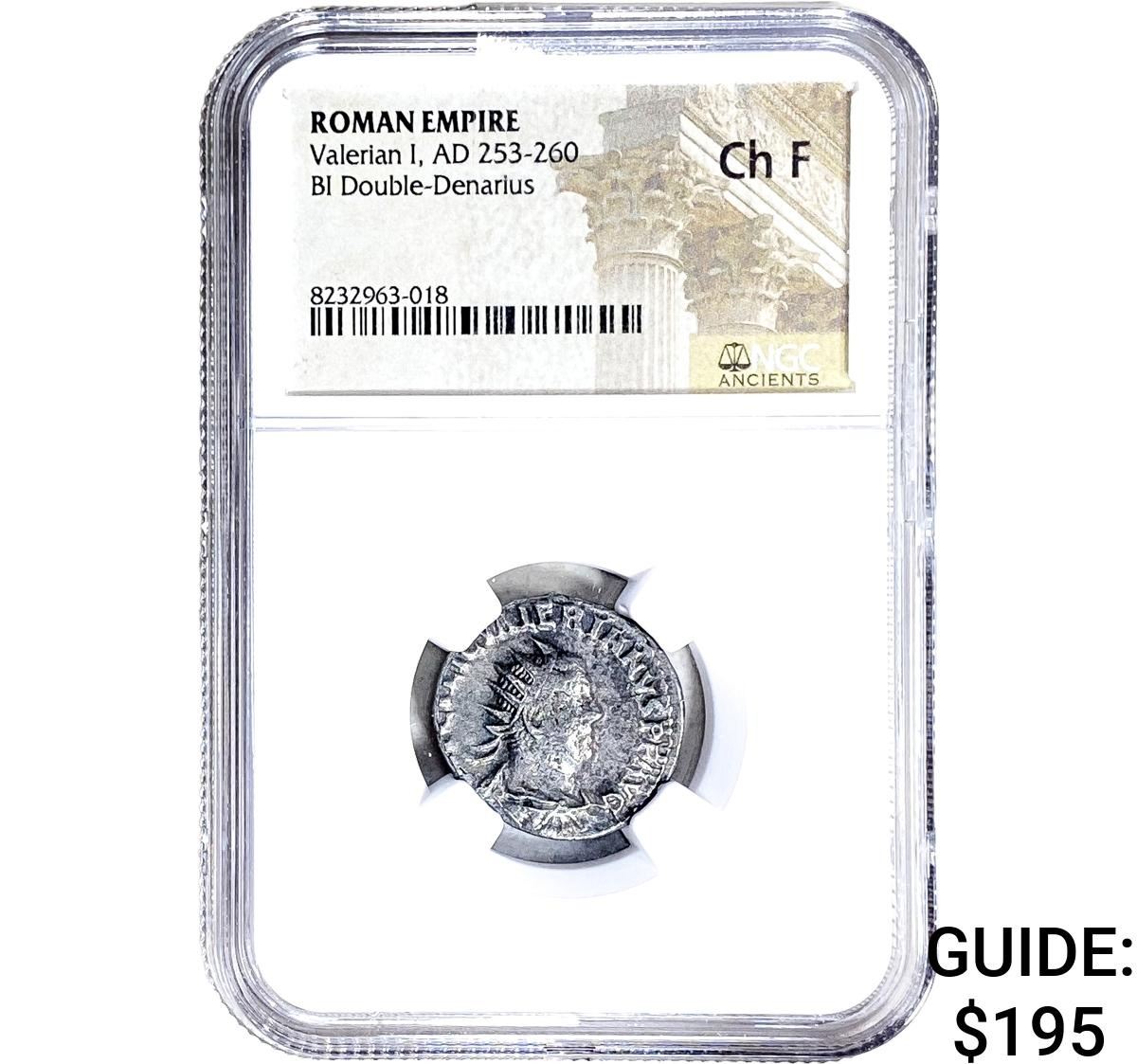 Roman Valerian I, AD 253-260 BI Dbl-Denarius NGC Ch F