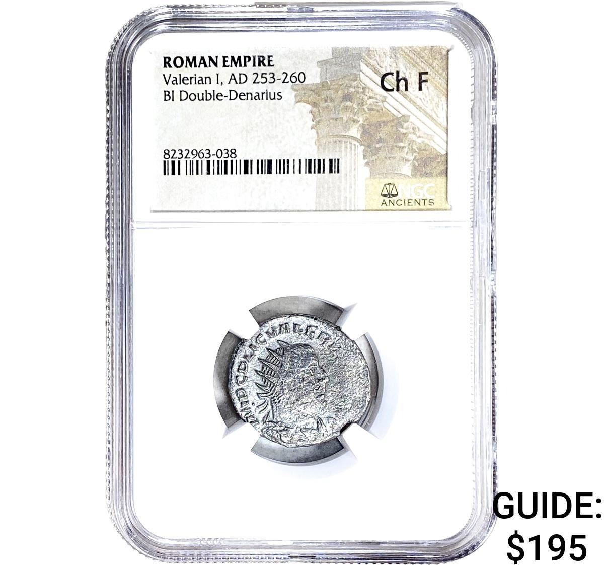 Roman Valerian I, AD 253-260 BI Dbl-Denarius NGC Ch F