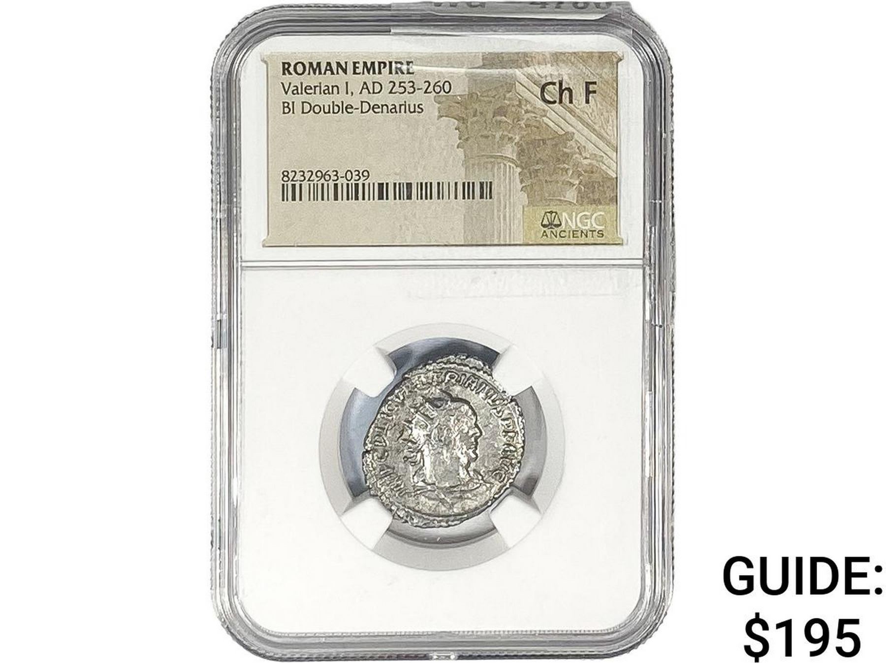 Roman Valerian I, AD 253-260 BI Dbl-Denarius NGC Ch F