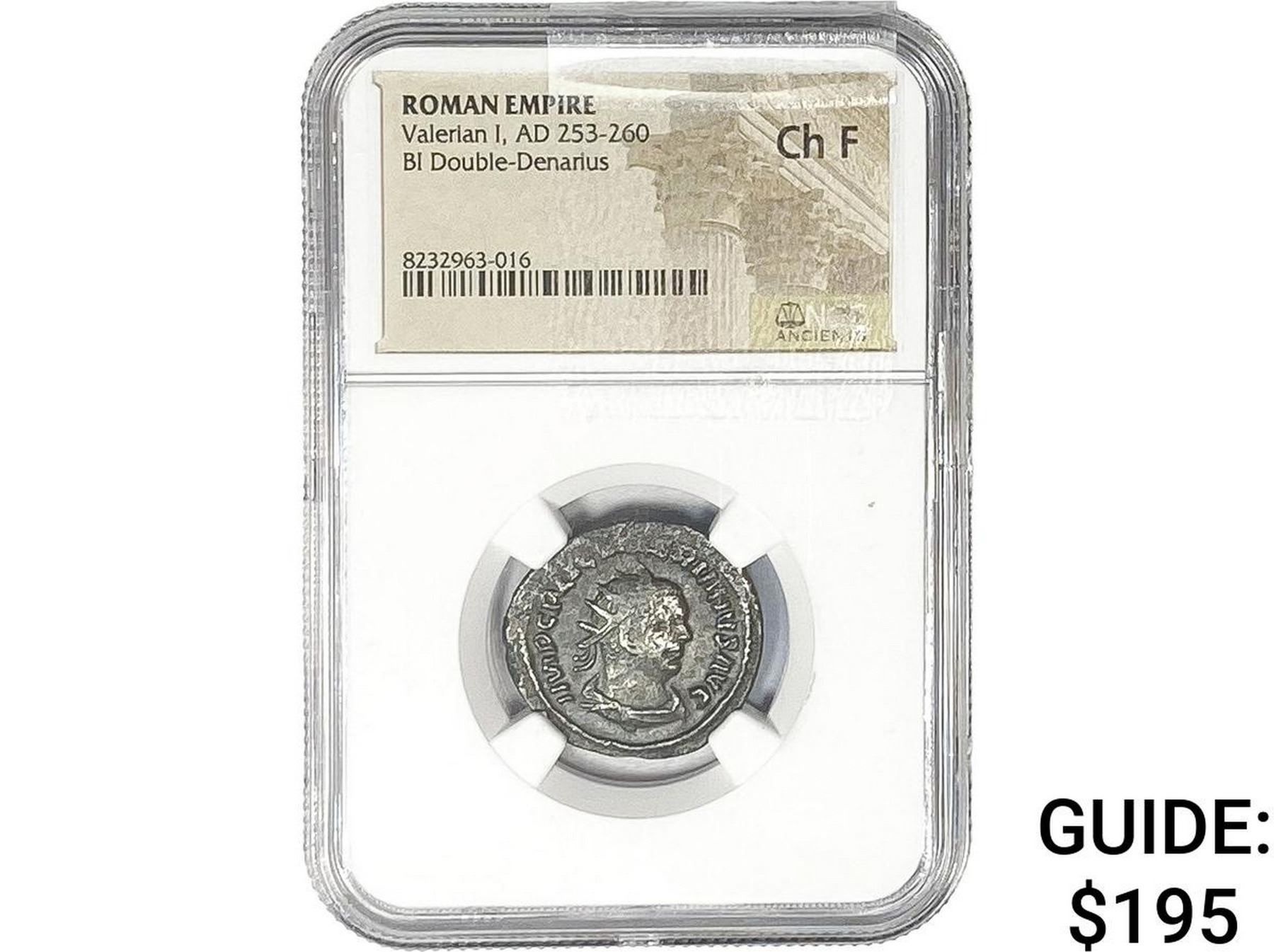 Roman Valerian I, AD 253-260 BI Dbl-Denarius NGC Ch F