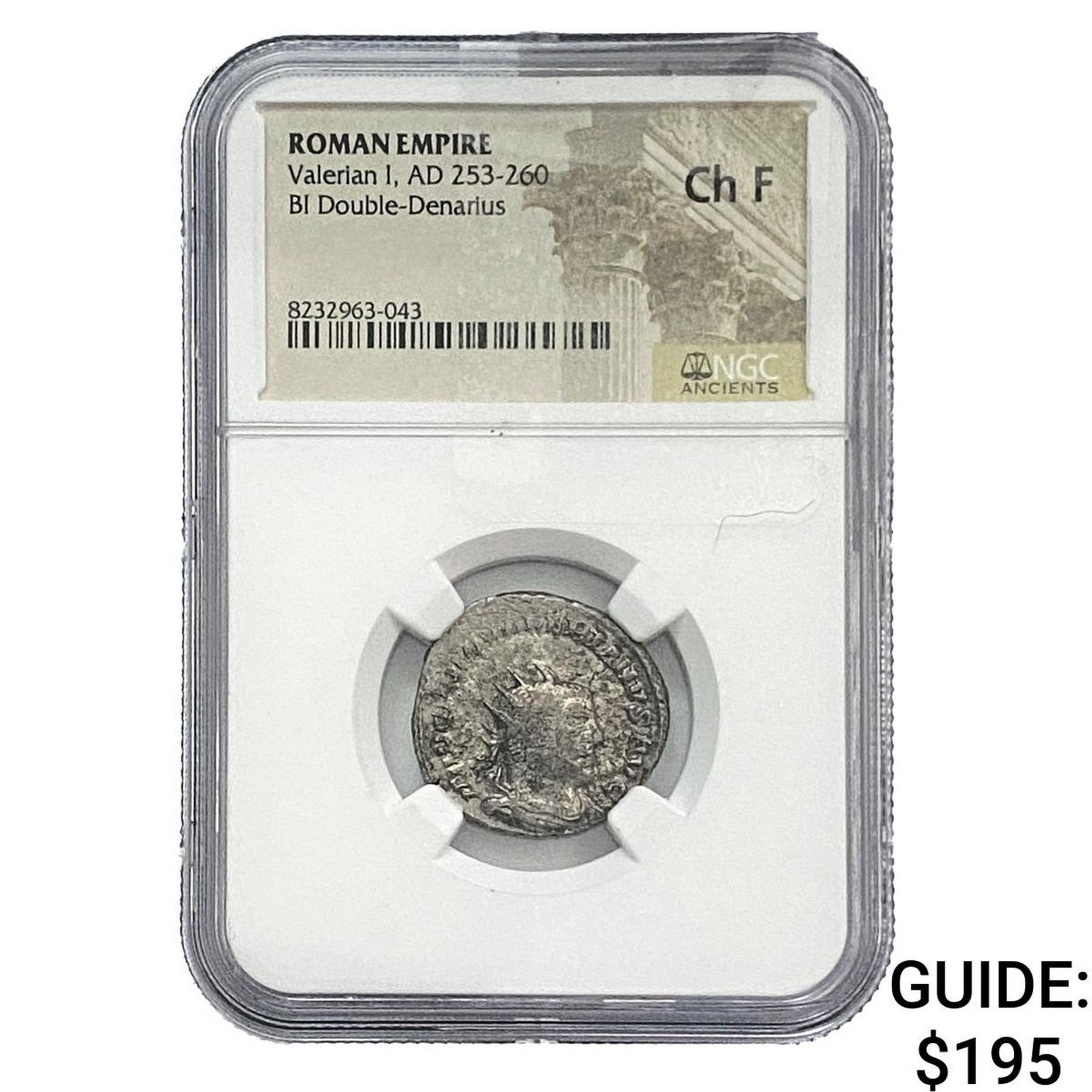 Roman Valerian I, AD 253-260 BI Dbl-Denarius NGC Ch F