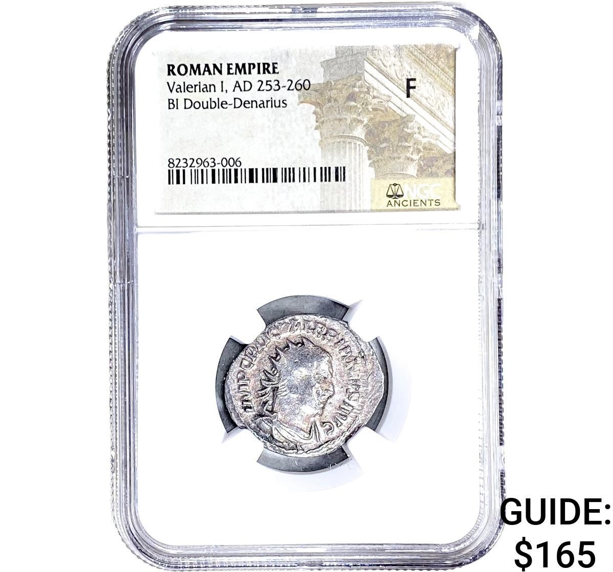 Roman Valerian I, AD 253-260 BI Dbl-Denarius NGC F