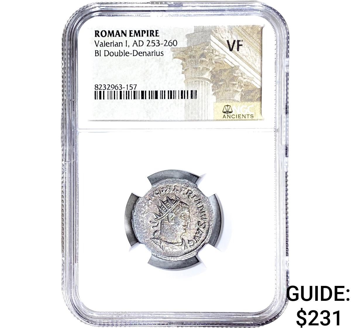 Roman Valerian I, AD 253-260 BI Dbl-Denarius NGC VF