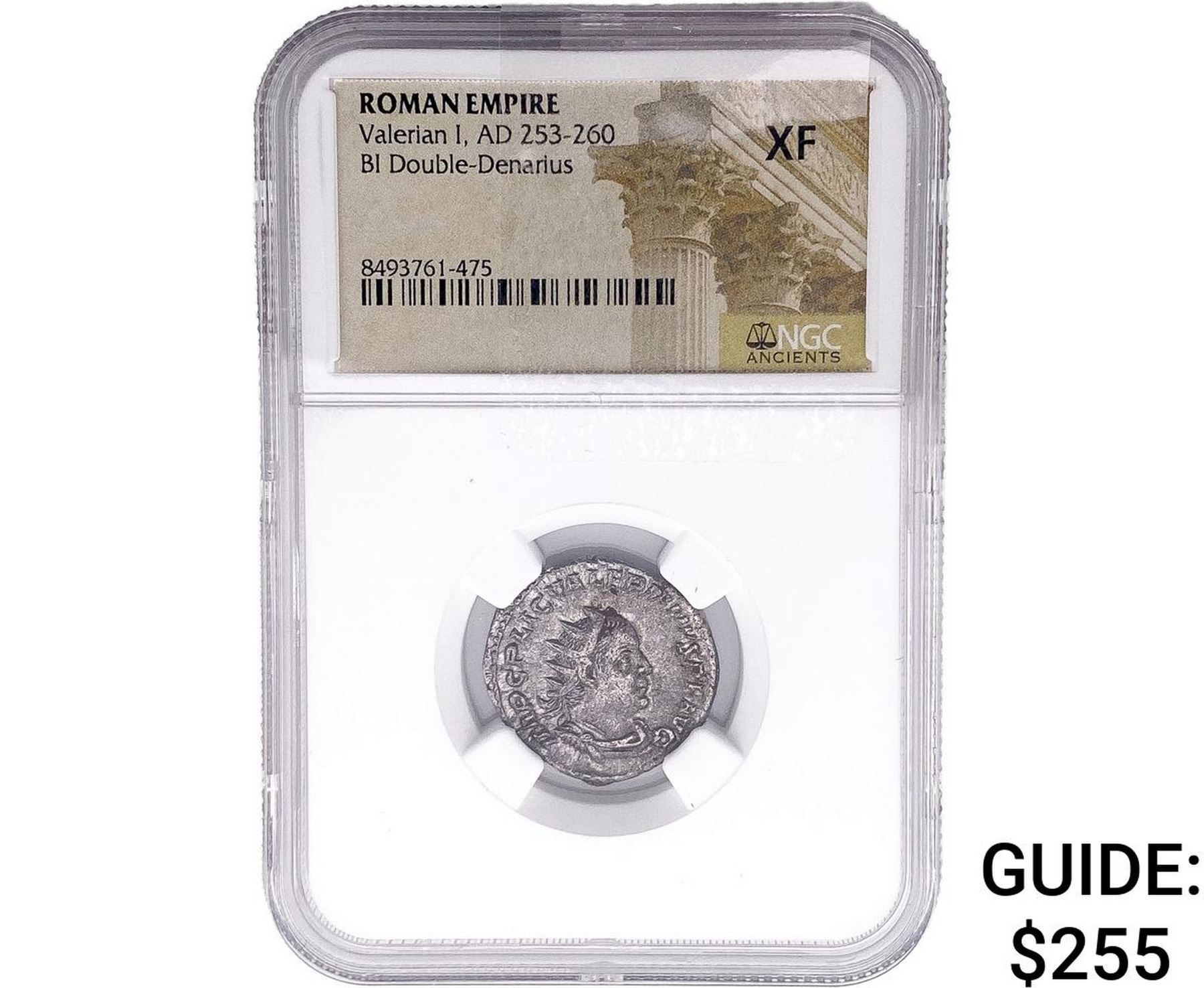 Roman Valerian I,AD 253-260 BI Dbl-Denarius NGC XF