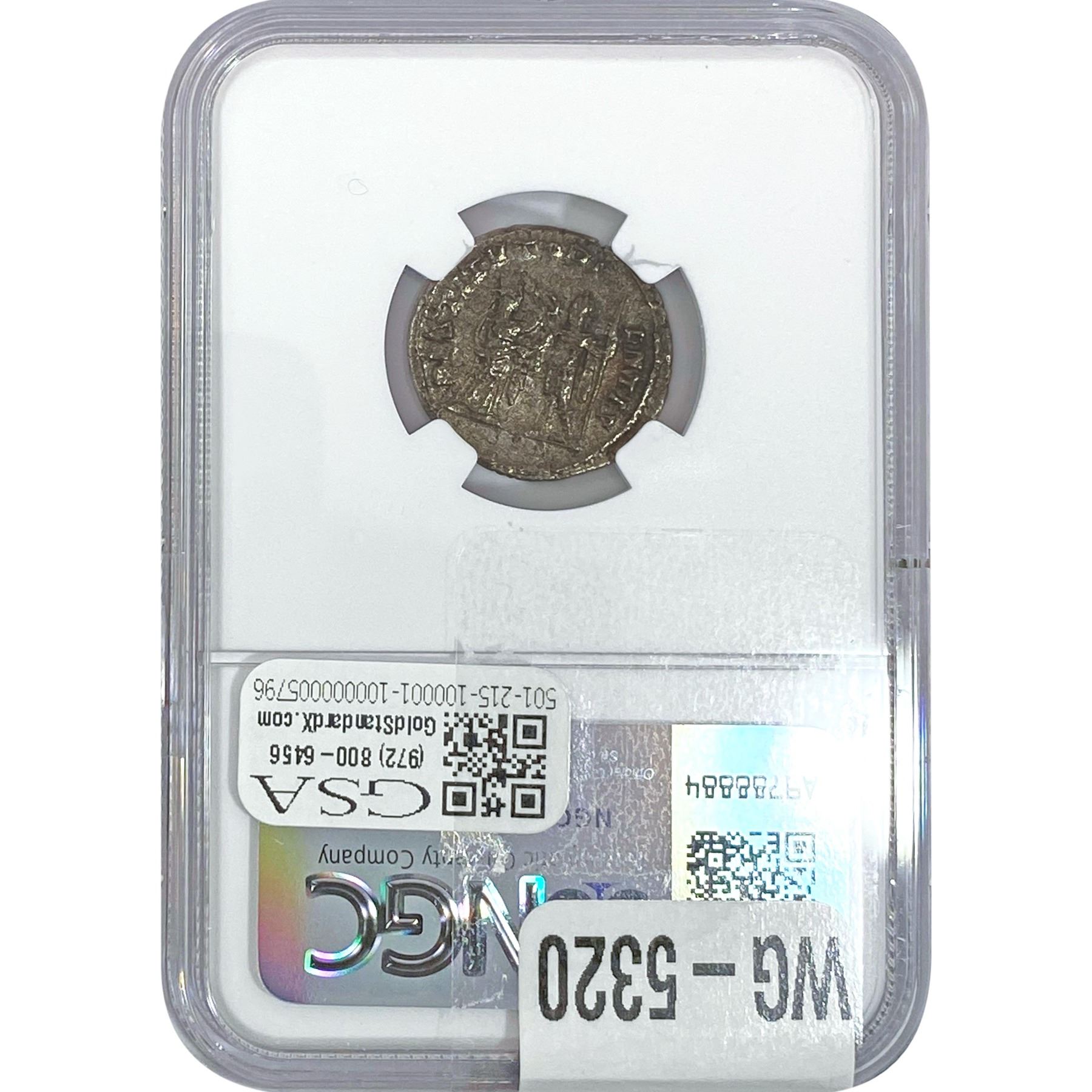 e. Coins sold referencing a third-party grading service are sold “AS IS” without any express or implied warranty, except for a guarantee by GSA that they are genuine. Removal or alteration of the holder, voids all of Bidder’s claims concerning that Product. Certain warranties may be available from the grading services and Bidders are referred to them for further details: Numismatic Guaranty Corporation (NGC), PO Box 4776, Sarasota, FL 34230, www.ngccoin.com/services/writtenguarantee.asp; Professional Coin Grading Services (PCGS), PO Box 9458, Newport Beach, CA 92658, www.pcgs.com/guarantee.html; ANACS, 6555 S. Kenton St., Ste. 303, Englewood, CO 80111; and Independent Coin Grading Co. (ICG), 7901 East Bellview, Ave., Suite 50, Englewood, CO 80111.
