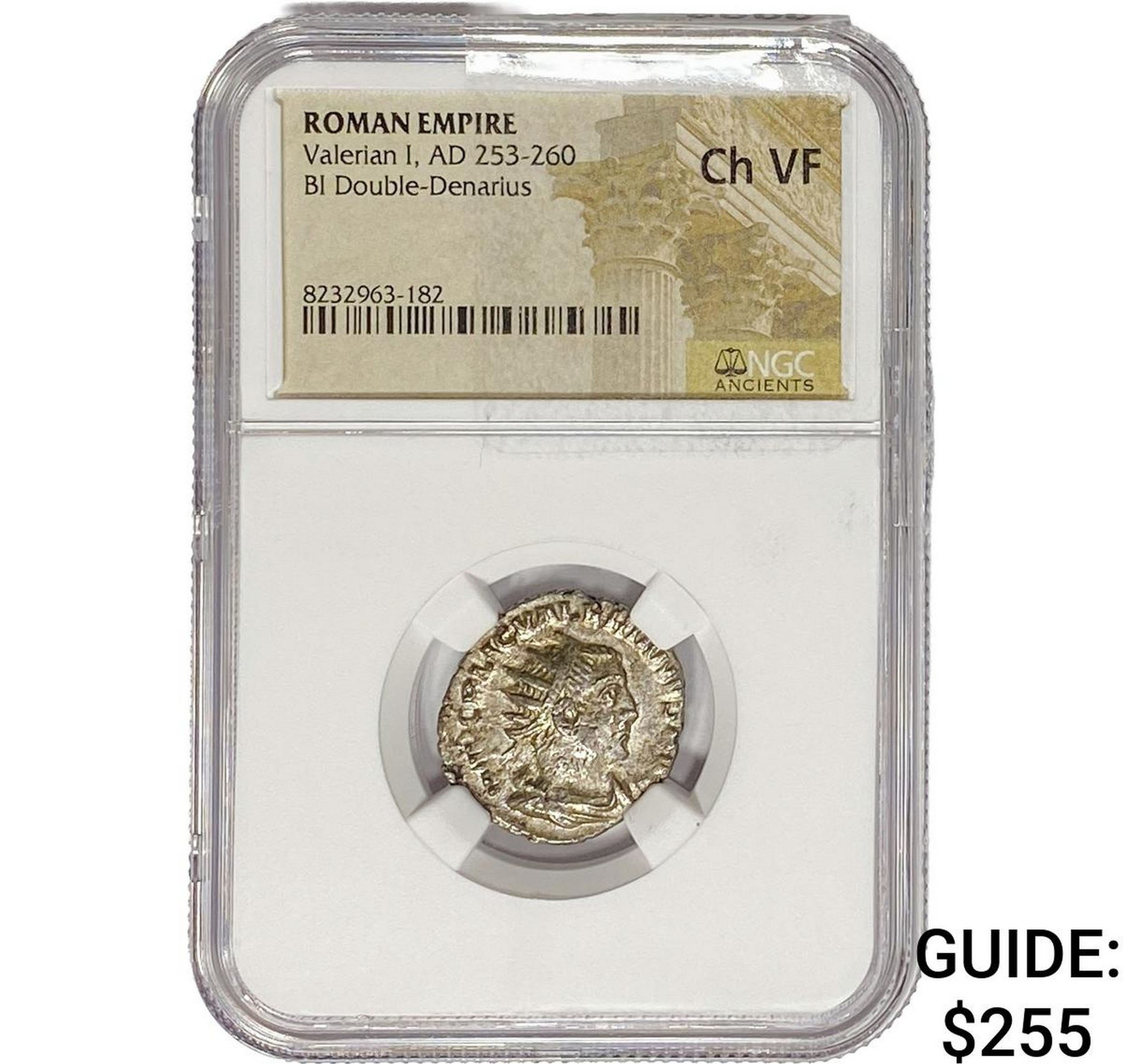 Roman Valerian I, AD 253-260 BI Double-Denarius NGC ChVF