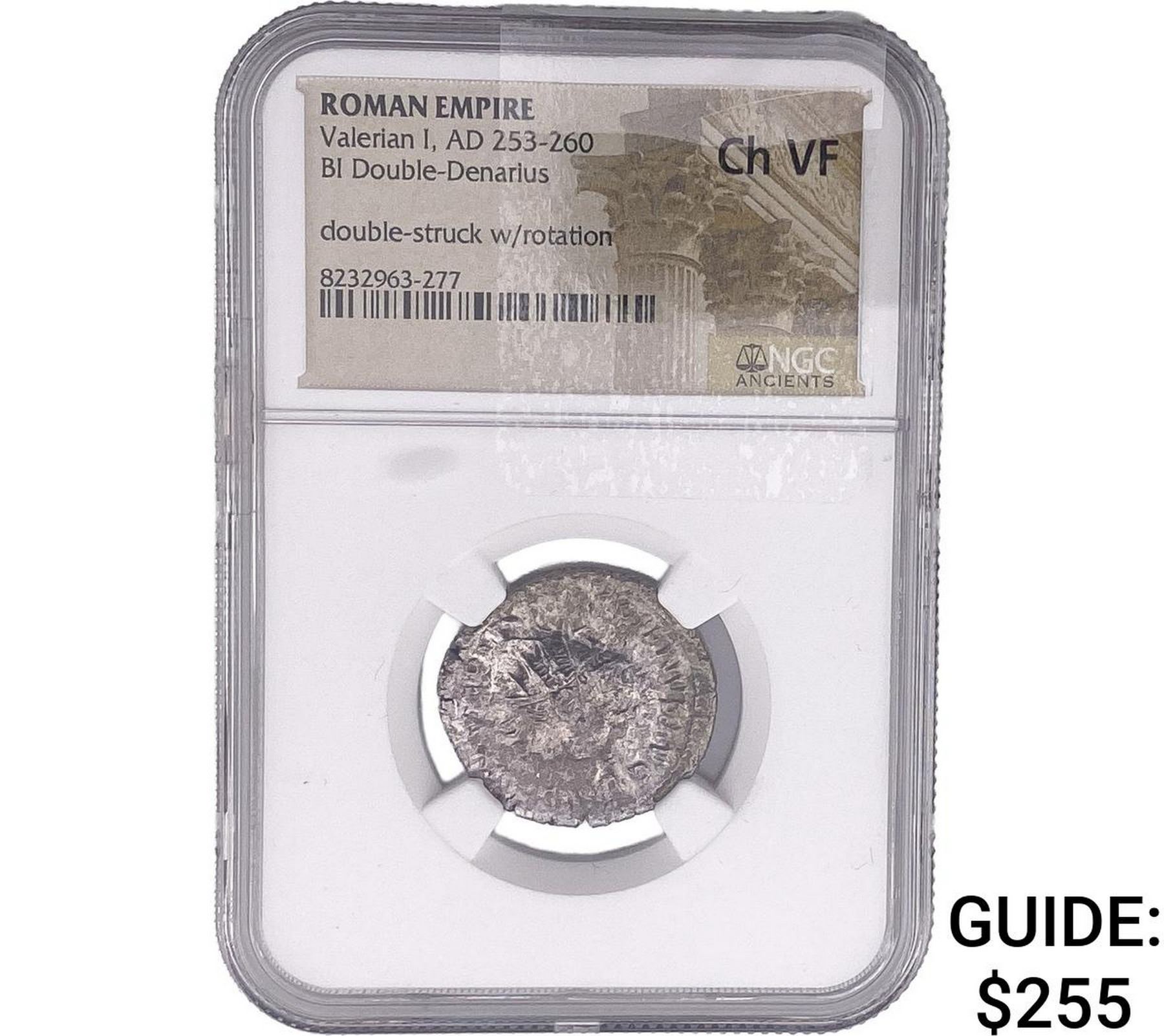Roman Valerian I, AD 253-260 BI Double-Denarius NGC ChVF