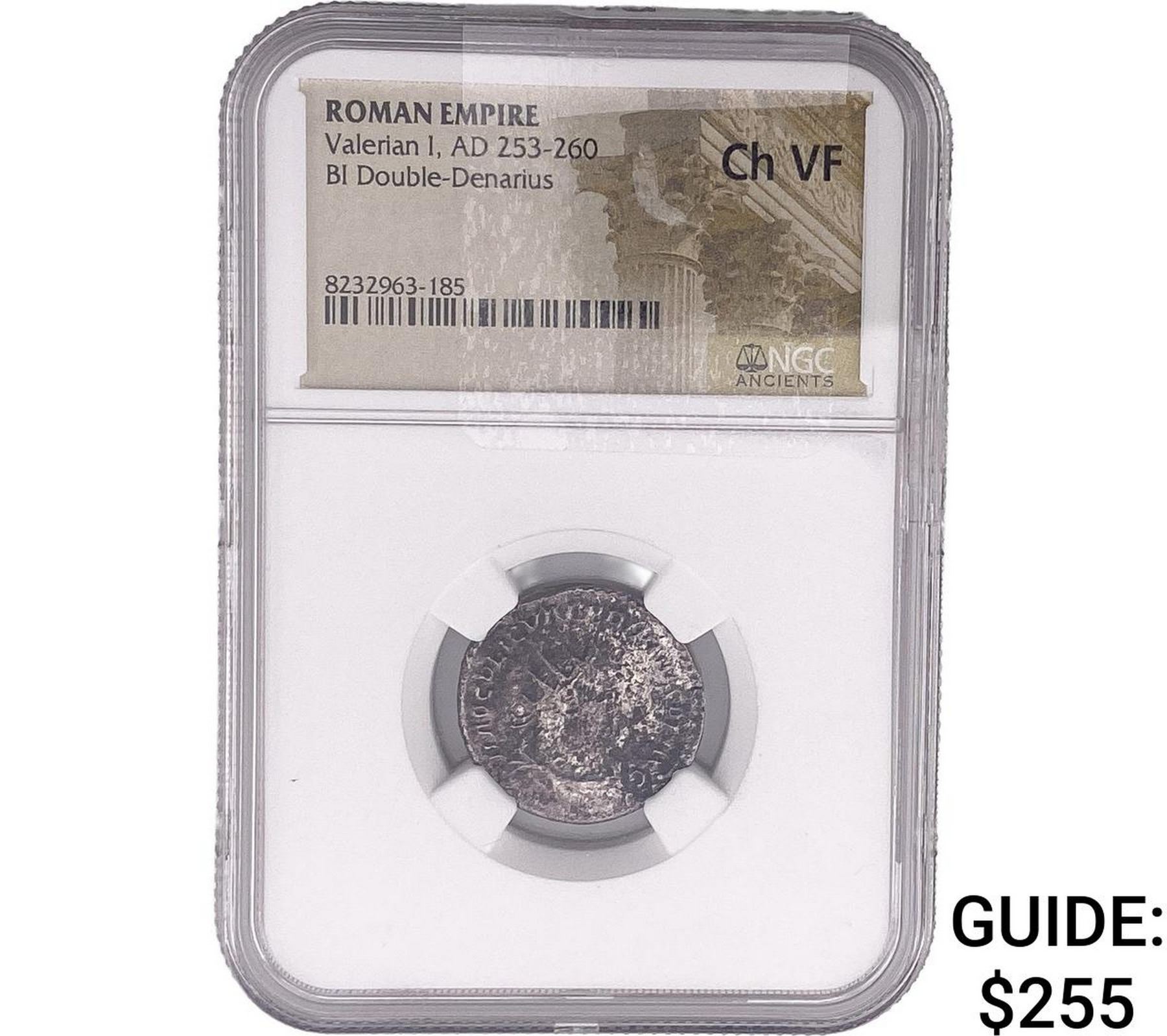 Roman Valerian I, AD 253-260 BI Double-Denarius NGC ChVF