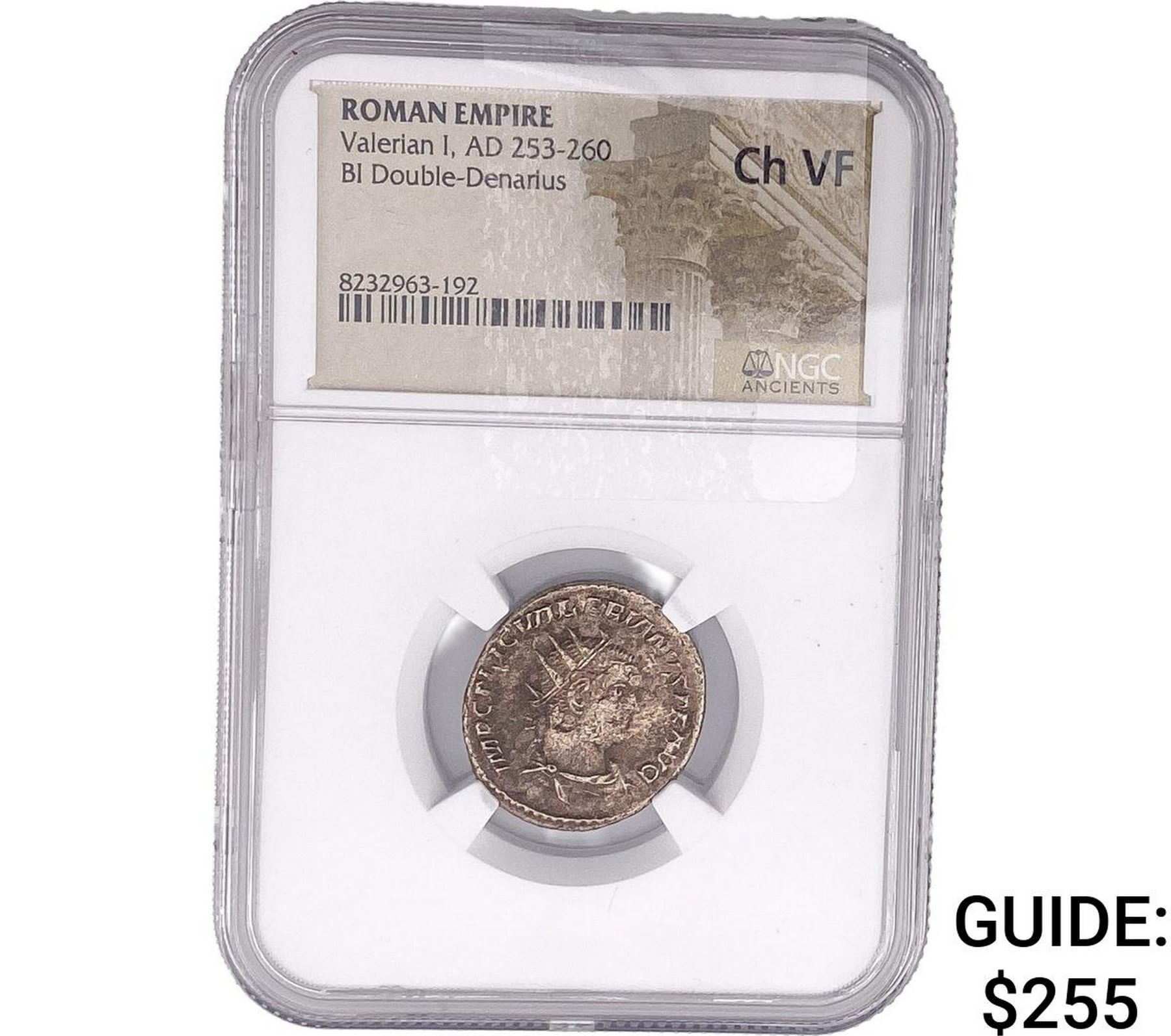 Roman Valerian I, AD 253-260 BI Double-Denarius NGC ChVF