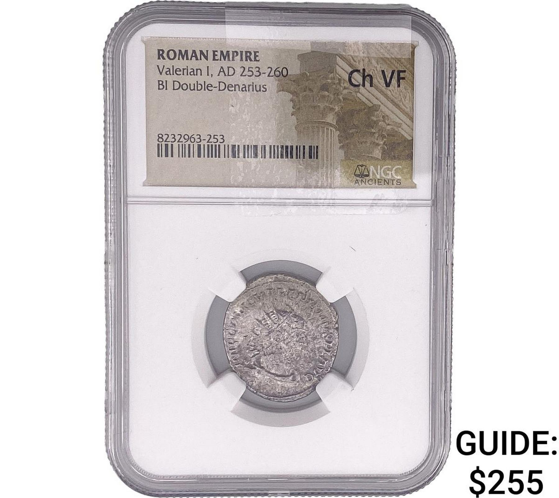 Roman Valerian I, AD 253-260 BI Double-Denarius NGC ChVF